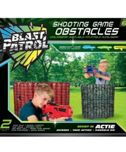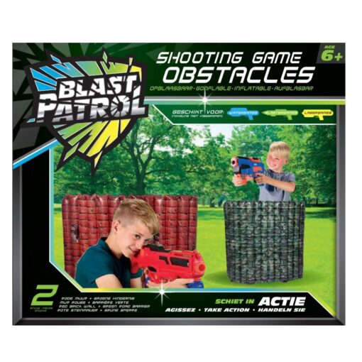 Met Opblaasbare Obstakels van Blast patrol bouw je een schietterein bij je thuis. Deze Opblaasbare Obstakels kunnen gebruikt worden met Nerf blasters, laser tag, waterpistolen en andere blasters. Alle obstakels hebben een geïntegreerd waterreservoir en 4 grondnagels die voor stabiliteit zorgen. Deze set bevat een Rode Muur en een Groene Hindernis. De Rode Muur en Groene Hindernis zijn beide 96 cm breed en 86 cm hoog.