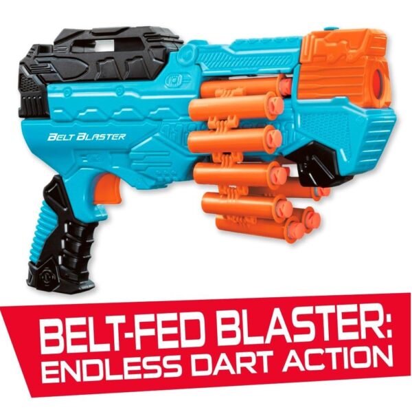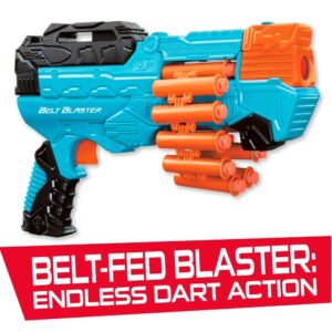 De BuzzBee Air Warriors Belt Blaster brengt groots speelplezier met een indrukwekkende 12-schots riem! De blaster heeft een stoere blauwe kleur met zwarte en oranje details. Met de meegeleverde dart riem is herladen snel en makkelijk. Inclusief 12 Accu-Blast pijltjes.