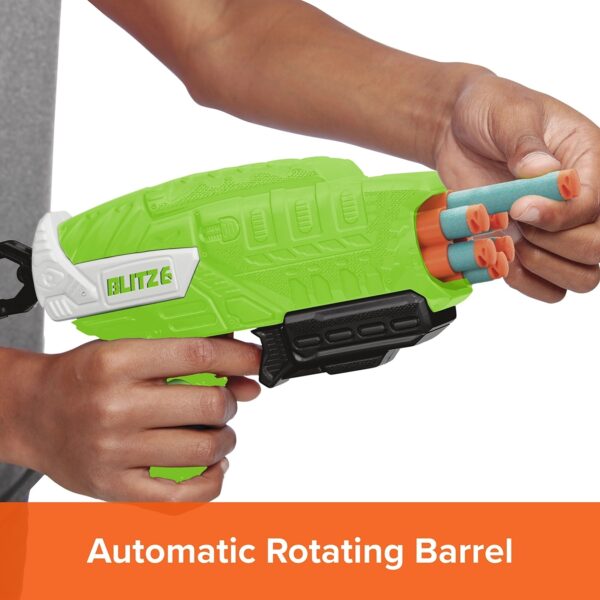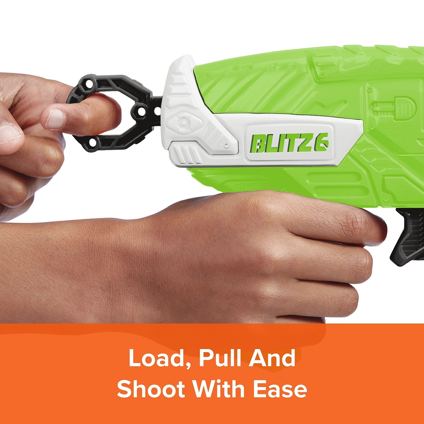 Vier blasters, eindeloos speelplezier! De BuzzBee Air Warriors Blitz Fury Set bevat twee Blitz 6 en twee Tek 3 blasters in blauw en groen. De Blitz 6 heeft een automatisch draaiende cilinder voor 6 pijltjes en wordt gespannen met een pull-back mechanisme. De Tek 3 heeft een handmatig draaiende cilinder voor 3 pijltjes. Samen vormen ze de ideale set voor blaster battles met vrienden of familie. Wordt geleverd met 20 Buzzbee Accu-Blast pijltjes.
