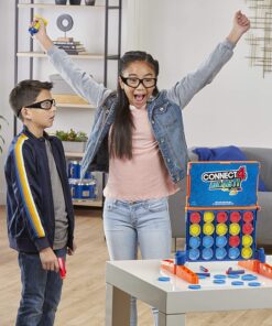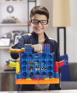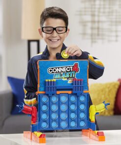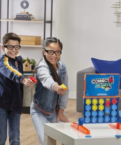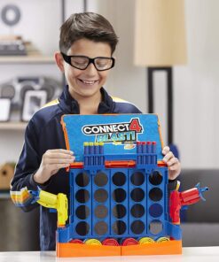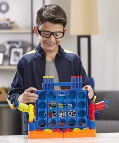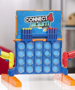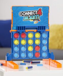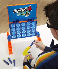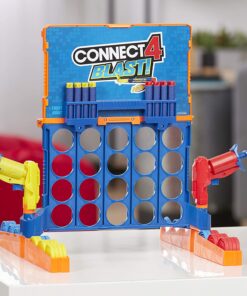 Dit Connect 4 Blast spel – Powered by Nerf is een speciale uitvoering van het bekende 4 op een rij spel. In dit spel schiet je schijfjes uit het spel met NERF blasters. Er zijn 2 spelmogelijkheden: ‘Blast 4 the win’ en ‘Get 4 in a row’. Het spel wordt geleverd met 2 Nerf blasters en 8 Nerf pijltjes.