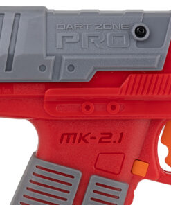 De Dart Zone Pro MK2.1 is de opvolger van de Dart Zone Pro MK2! De MK2.1 heeft een magazijn waar 6 pijltjes in passen. Het magazijn wordt door het handvat in de blaster geladen waardoor je makkelijk en snel kunt herladen. De MK2.1 wordt geleverd met een holster voor de blaster en het loopverlengstuk. Daarnaast worden 2 extra magazijnen en een holster voor de magazijnen meegeleverd. Inclusief 18 korte Dart Zone Bamboo 2.0 pijltjes en een Dart Zone Pro veiligheidsbril.