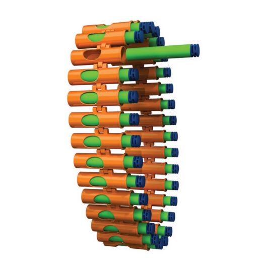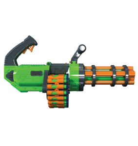 De Dart Zone V-Twin is een elektrische volautomatische blaster met riem. In de riem passen 30 pijltjes. Druk de onderste knop in om de motors te laten draaien, en haal de trekker om automatisch pijltjes te schieten. De loop van de blaster draait rond. In de trommels waar de riem omheen loopt is ruimte om 30 extra pijltjes op te slaan. De blaster wordt geleverd inclusief 30 Dart Zone Sureshot Waffle pijltjes. Werkt op 6 AA-batterijen (apart verkrijgbaar).