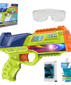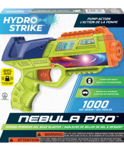 De Hydro Strike Nebula Pro is een veer aangedreven Gel blaster. Deze gel blaster schiet gel balletjes op hoge snelheid die uit elkaar spatten als ze hun doel raken. Hydrateer de balletjes in water om ze klaar te maken voor gebruik. De Hydro Strike Nebula Pro heeft een interne hopper waar 120 gel balletjes in passen. De gel blaster schiet 1 balletje per keer. De Nebula Pro wordt geleverd met 1.000 Gel balletjes, een zakje om de balletjes te hydrateren, en een beschermbril.