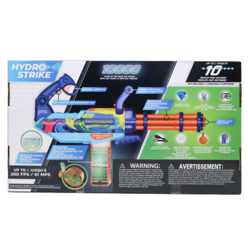 De Hydro Strike Stratos Pro is een gemotoriseerde Gel blaster. Deze gel blaster schiet gel balletjes die op hoge snelheid die uit elkaar spatten als ze hun doel raken. Hydrateer de balletjes in water om ze klaar te maken voor gebruik. De Stratos Pro is een vol-automatische blaster met een groot drum magazijn waar 1.200 balletjes in passen. De blaster schiet tot wel 10 balletjes per seconde uit de draaiende loop. Met de Glow In The Dark balletjes kun je zelfs in het donker spelen! De Stratos Pro wordt geleverd met 10.000 Glow In The dark balletjes, een zakje om de balletjes te hydrateren, en een beschermbril. De blaster werkt op een meegeleverde 7.4V Lithium-Ion accu die opgeladen kan worden met de meegeleverde USB kabel.