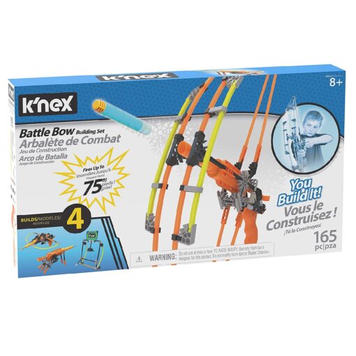Bouw je eigen blaster met de K’NEX Battle Bow Building Set! De bouwset bevat bouw-instructies voor 4 verschillende blasters en targets. Er zitten 165 stukjes in de set, en een blaster unit, een handvat, laadhendel en twee pijltjeshouders. Er worden 5 pijltjes meegeleverd.