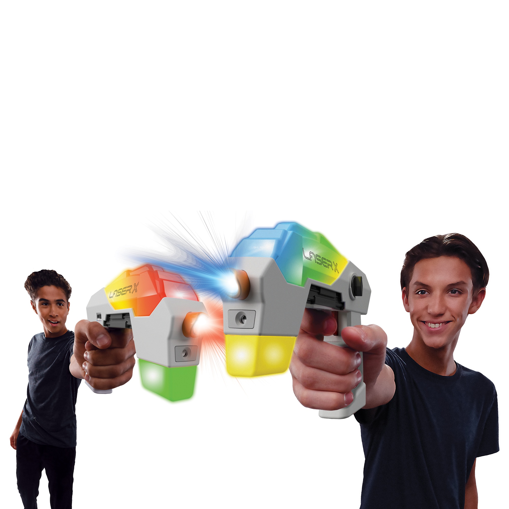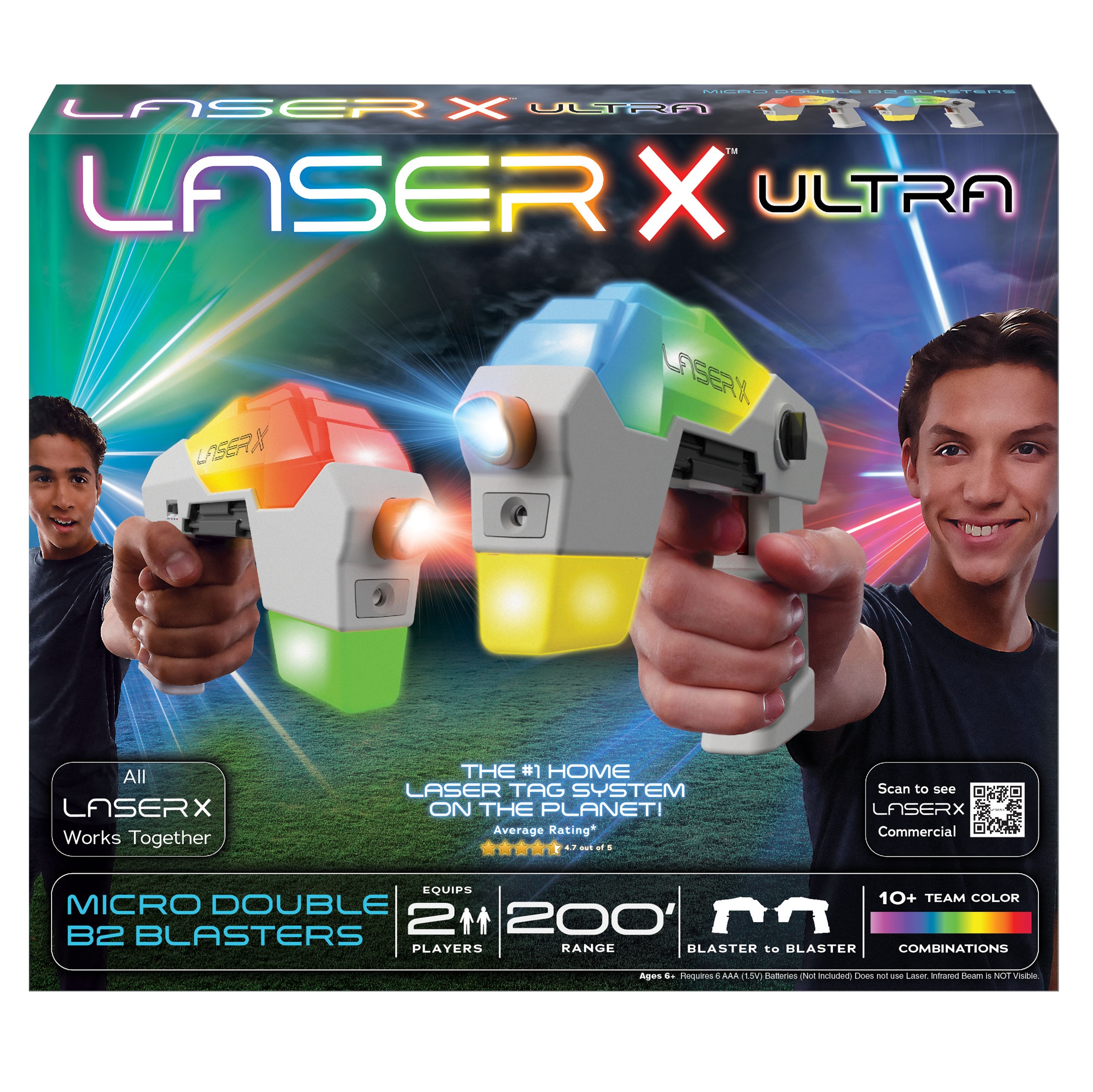 Compact maar krachtig: de Laser X Ultra – Micro Double B2 Blasters brengen spannende battles op elk moment en overal. Deze 2-pack heeft een bereik tot 60 meter, en dankzij de Ultra-modus kun je alle kleuren langs laten flitsen. Speel met ongelimiteerd aantal spelers en kies uit 10+ teamkleurencombinaties. Ultra-ontvangers laten zien wie jou getagd heeft, en de set is perfect voor dag én nacht, binnen of buiten. Alle Laser X blasters werken onderling samen, dus iedereen kan meedoen. Werkt op 6 AAA-batterijen (apart verkrijgbaar).