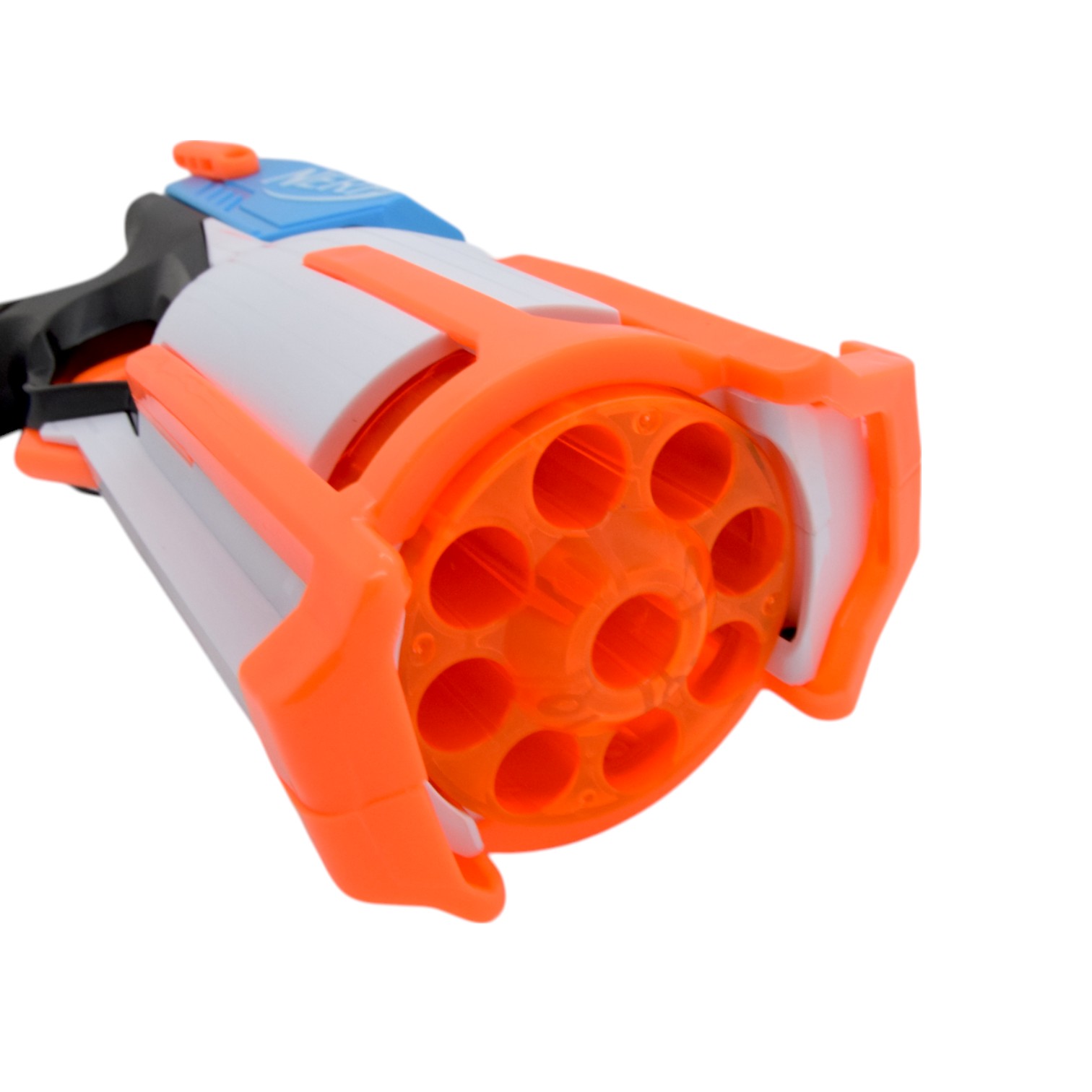 De NERF Action Xperience Blaster is speciaal ontworpen voor intensief gebruik tijdens blaster battles in de NERF Action Xperience arena’s. Deze stevige blaster heeft een roterende drum met plek voor 8 standaard formaat pijltjes. Span de veer door de beugel aan de achterkant naar achteren te trekken. De blaster heeft een scharnierende prime beugel. Na het spannen van de veer keert de priming grip automatisch terug naar de originele positie. Dit zorgt voor een soepel gebruik. Let op: deze blaster wordt geleverd zonder pijltjes, verpakking of handleiding.