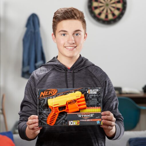 De NERF Alpha Strike line is een lijn van blasters die makkelijk te gebruiken zijn, en betaalbaar zijn voor nieuwe Nerfers. De Fang QS-4 is een blaster waar 4 pijltjes in passen. Wordt geleverd inclusief 10 Elite pijltjes.