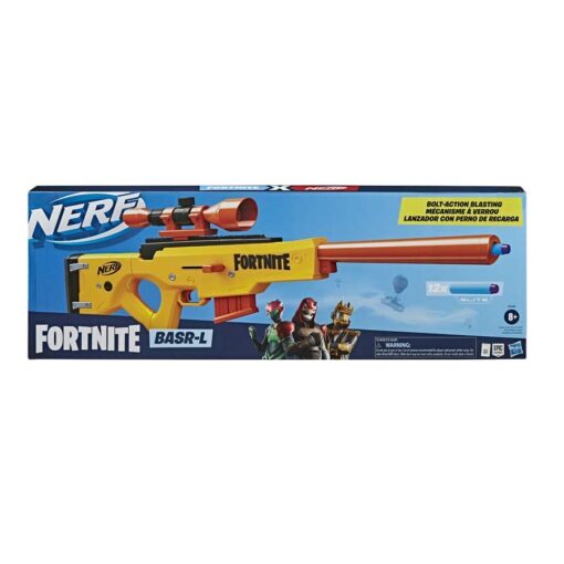 De NERF Fortnite BASR-L is een bolt-action Nerf sniper blaster gebaseerd op de legendary Bolt-Action Sniper Rifle van Fortnite. De veer van de blaster wordt gespannen met de hendel aan de zijkant. Op de bovenkant van de blaster vind je Nerf tactical rail om het meegeleverde vizier te monteren. De blaster wordt geleverd met een magazijn voor 6 pijltjes en 12 Fornite Nerf Elite pijltjes.