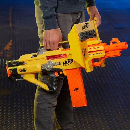 De NERF Icon Serie brengt favoriere blasters uit het verleden terug om de 50e verjaardag van Nerf te vieren. De Stampede is een vol-automatische Nerf blaster. Elektrische motors brengen de veer op spanning die uiteindelijk het pijltje afschiet. De Stampede wordt geleverd met een verwijderbaar schild en 2 magazijnen voor 18 pijltjes. Er worden ook 36 Nerf elite pijltjes meegeleverd, waarvan 18 met een speciale Icon Series opdruk. De blaster werkt op 6 D-cel batterijen. (apart verkrijgbaar)
