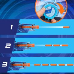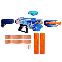 Til je blaster battles naar een hoger niveau met de NERF Load Out Galactic Commander. Deze elektrische blaster beschikt over drie automatische vuurmodi: semi-auto, burst (3 pijltjes) en full-auto. De Galactic Commander wordt geleverd met twee 18-dart magazijnen en 48 NERF N1 pijltjes. Je kunt de blaster aanpassen met een afneembare loop, vizier en magazijn storage schoudersteun. Combineer onderdelen van andere Load Out blasters en accessoires voor eindeloze mogelijkheden.