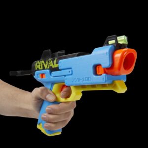 Met de NERF Rival Fate XX-100 haal je precisie en power in huis voor je blaster battles! Deze single-shot Rival blaster werkt met een breech-load systeem: trek de T-vormige priming handle naar achteren, laad een Rival Accu-Round en vuur met kracht en precisie. Het ontwerp is compact en ligt comfortabel in de hand, perfect voor snelle acties. De loop is geoptimaliseerd voor verbeterde prestaties, zodat je Rival Accu-Rounds strakker en accurater vliegen dan gewone Rival balletjes. Dankzij het edge-glow vizier aan de voorkant en het verstelbare vizier aan de achterkant richt je nauwkeurig op je doelwit.