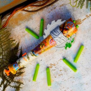 De NERF Zombie Strikeout is een opvallende blaster die eruitziet als een combinatie van een knuppel en een blaster! Dankzij de trekmechaniek aan de achterkant is de veer eenvoudig te spannen. De loop aan de voorkant biedt plaats aan 2 pijltjes die je handmatig laadt. Ideaal voor snelle acties in compacte Nerf battles. De felle kleuren en unieke vormgeving maken deze blaster een echte eyecatcher in elke verzameling. Wordt geleverd met 8 NERF Elite pijltjes.