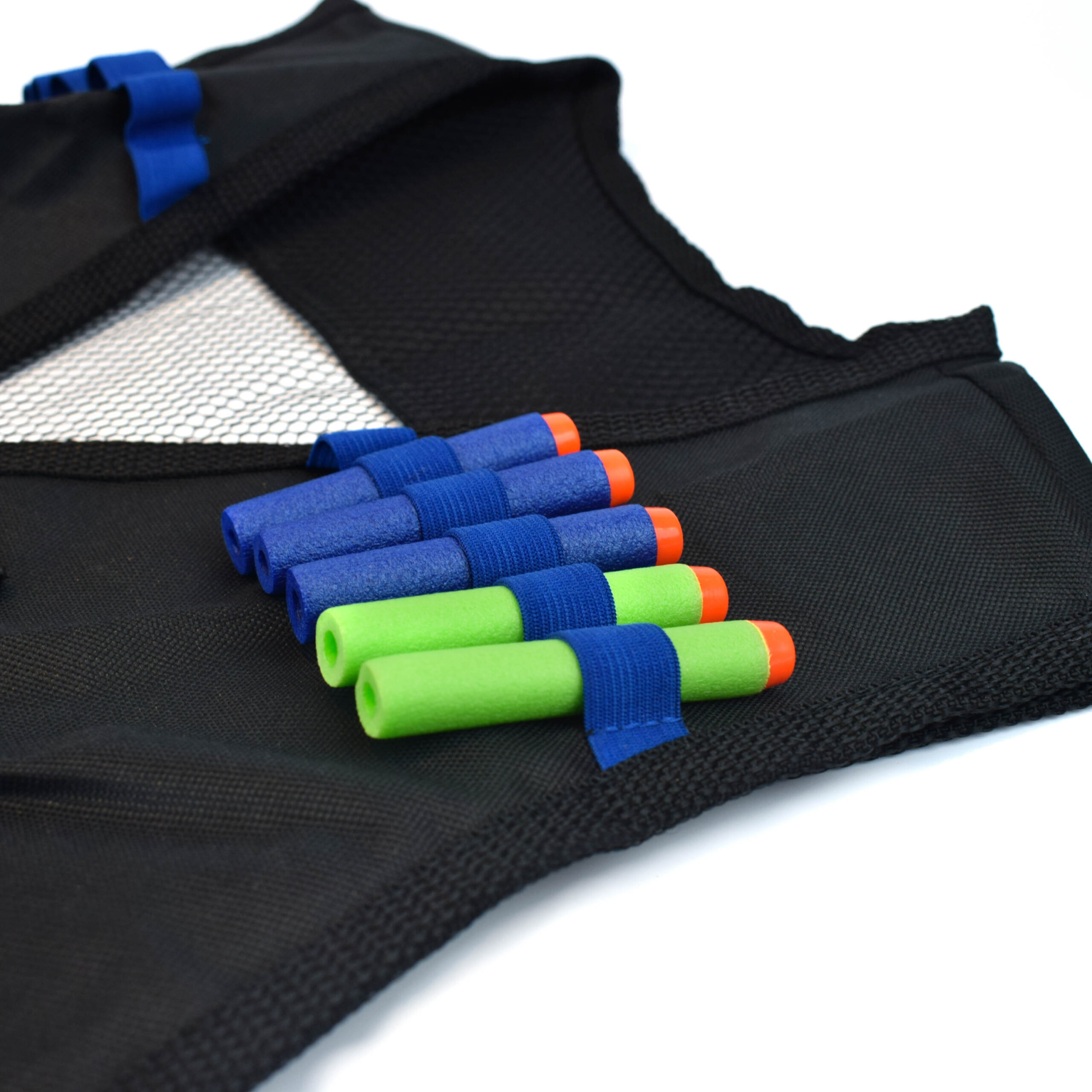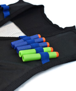 Met het tactische vest voor Nerf neem je genoeg munitie mee om de strijd aan te gaan! In dit vest heb je ruimte voor 12 losse pijltjes en 5 magazijnen. Dan heb je nog een vak van gaas voor losse pijltjes of andere spullen.