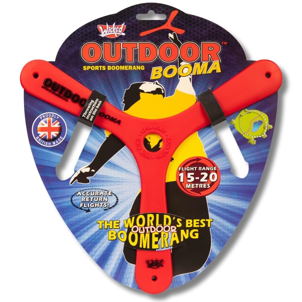 De Wicked Outdoor Sports Boomerang is dé boemerang voor ultieme outdoor actie. Dankzij zijn unieke vorm en lichte constructie vliegt hij soepel en precies door de lucht. Deze boemerang is gemaakt van flexibel kunststof dat tegen een stootje kan, waardoor hij ideaal is voor sportieve spelmomenten in het park, op het strand of in je eigen achtertuin. De aerodynamische vorm zorgt voor een betrouwbare boogvlucht en een consistente terugkeer, mits correct gegooid.