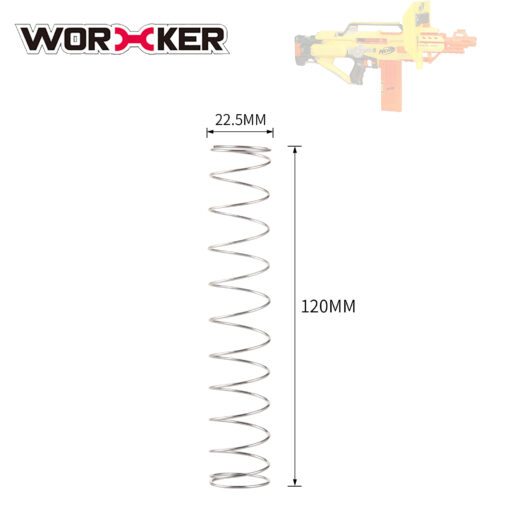 Deze Bolt Return veer van Worker is speciaal ontworpen voor de Nerf Stampede. Deze veer is iets sterker dan de originele veer, wat helpt bij een hogere rate of fire en betrouwbaarder sluiten van de breech.