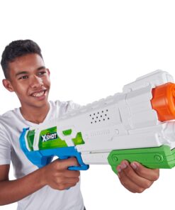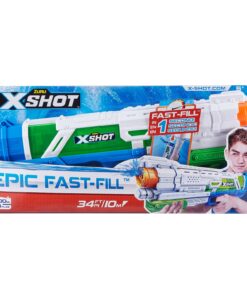 De X-Shot Epic Fast Fill is een groot waterpistool die heel makkelijk te vullen is! De blaster heeft een klep aan de achterkant die open kan om super snel te vullen. Open de klep, dompel de blaster onder water en hij is in een seconde gevuld! Er past 1000 ml water in de blaster, en hij schiet ongeveer 10 meter ver.