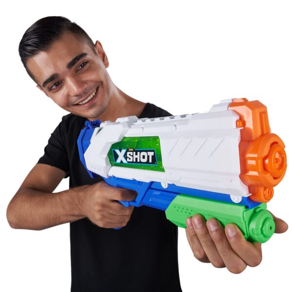 De X-Shot Fast Fill Water Blaster is heel makkelijk te vullen zodat je zo snel mogelijk weer verder kunt met spelen. Door de Fast Fill technologie vul je de blaster in maar 1 seconde via de klep aan de achterkant. In de blaster past 700 ml water en de waterstraal schiet ongeveer 10 meter ver.