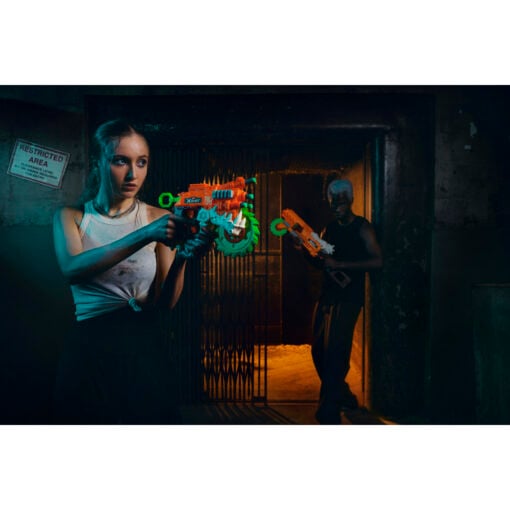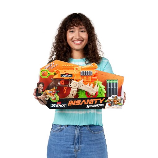 Maak indruk met de angstaanjagende X-Shot Insanity HorrorFire Reaper X! Deze unieke blaster heeft een roterend foam zaagblad dat perfect is voor speciale battles. De blaster heeft een capaciteit van 4 pijltjes en biedt een snel en indrukwekkend ontwerp voor elke gelegenheid. Inclusief 8 pijltjes.