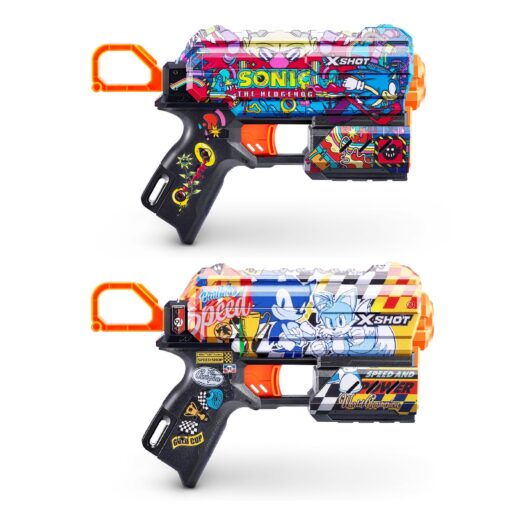 Kies je Skin en ga de strijd aan met de X-Shot Flux – Sonic! De Flux – Sonic is een kleine blaster met een unieke eigenschap: hij heeft een terugslag! De veer van deze blaster is eenvoudig te spannen met de ring aan de achterzijde. Als je de trekkker overhaalt wordt het pijltje weggeschoten en beweegt het bovenste deel van de blaster naar achteren. Wordt geleverd inclusief 8 X-Shot Air Pocket Technology pijltjes.