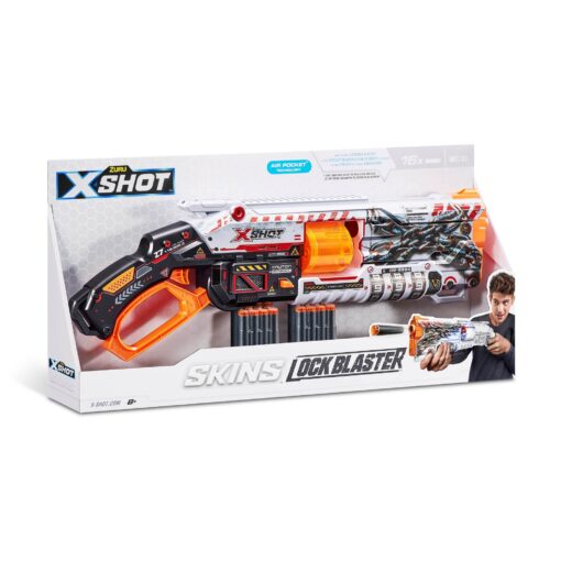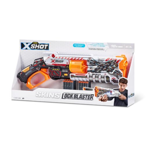 De X-Shot Skins Lock blaster is een blaster met een unieke functie: een slot! Op de blaster vind je een QR code waarmee je jouw code kunt ontdekken. Zo kun je er voor zorgen dat alleen jij de blaster kunt gebruiken! De Lock blaster heeft een draaiende cilinder waar 8 pijltjes in passen. Wordt geleverd met 16 X-Shot Air Pocket Technology pijltjes.