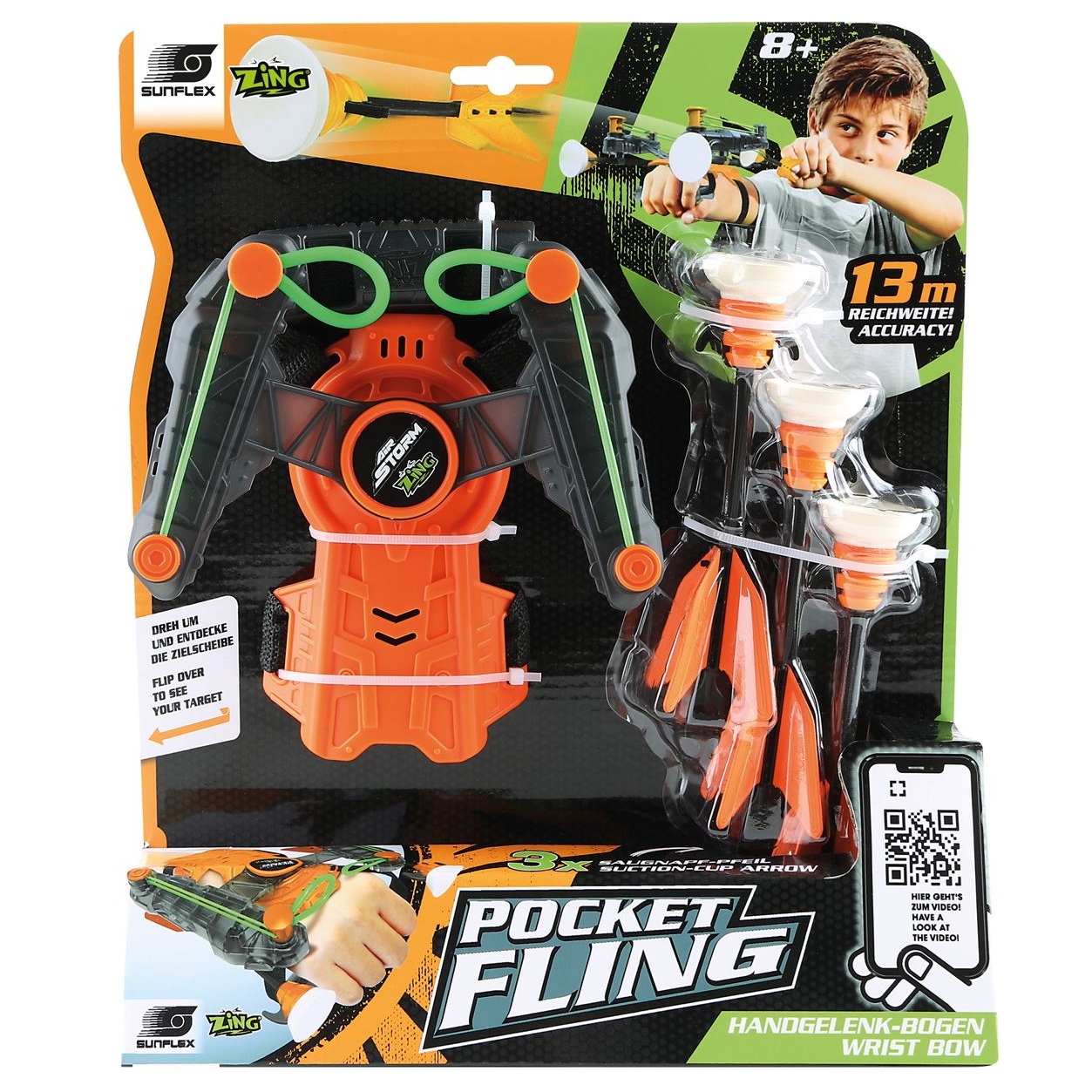 Beleef razendsnelle actie met de Zing Pocket Fling Wrist Bow! Deze compacte boog is ontworpen voor directe actie: laden, aantrekken en vuren. De elastische band lanceert de zuignappijltjes met verrassende precisie tot wel 13 meter ver. Ideaal voor binnen of buiten.
